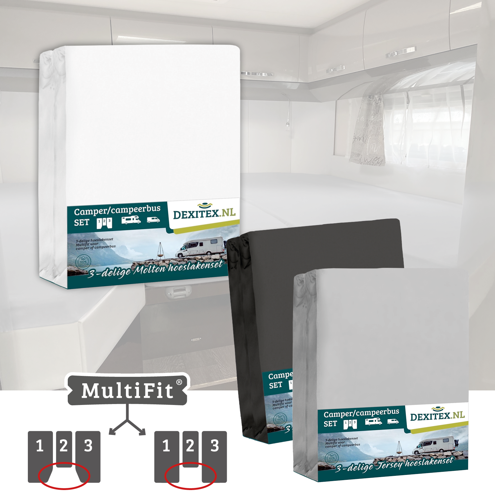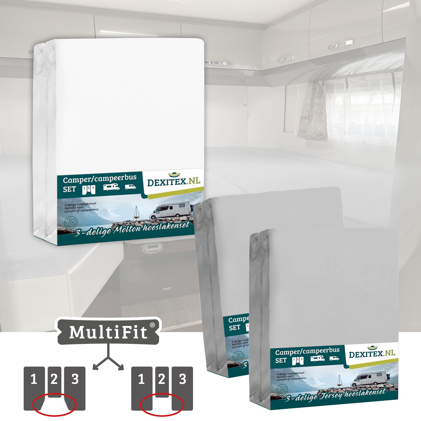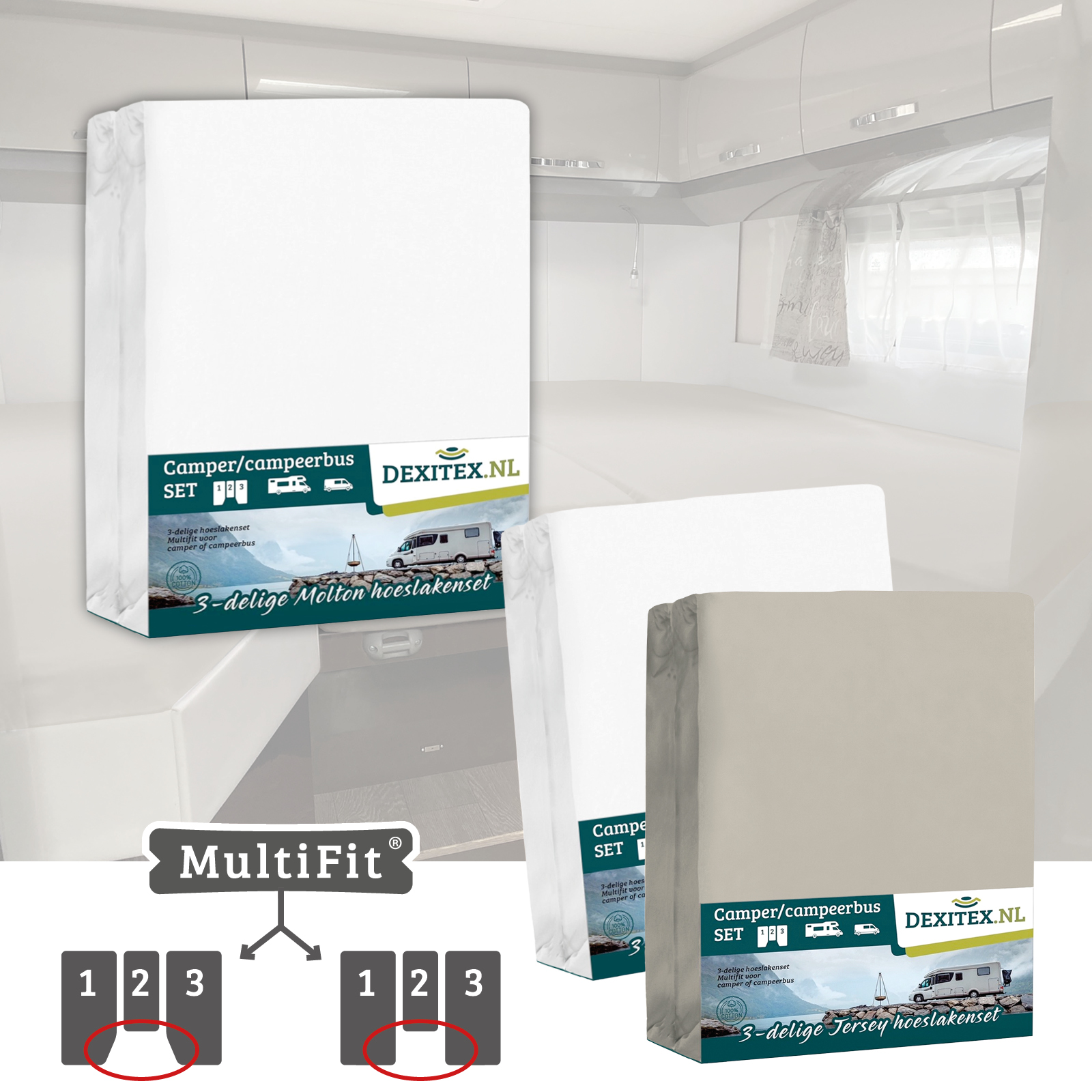 Camper/Caravan – 3 delige set molton hoeslakens