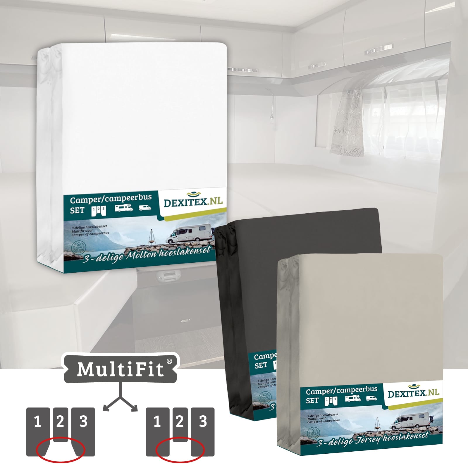 Complete set molton en jersey hoeslakens (3 delige sets speciaal voor caravan of camper indeling)