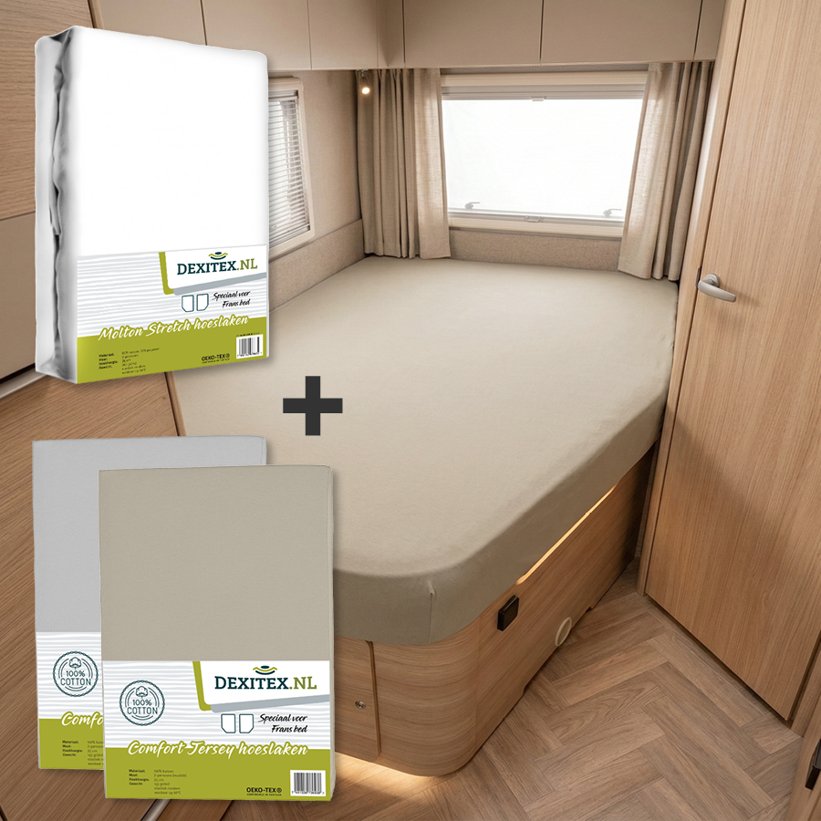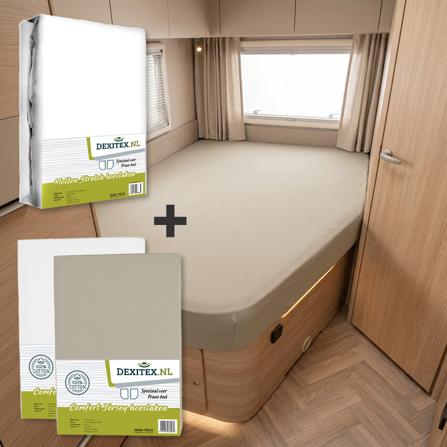 De hoezen voor deze set zijn speciaal ontwikkeld voor Frans bed matrassen d.w.z. alle hoezen zijn voorzien van een afgeschuinde hoek aan het voeteneinde voor een perfecte pasvorm. Zo slaap je altijd lekker in de caravan, camper of op de boot. Lekker flexibel en het past altijd!